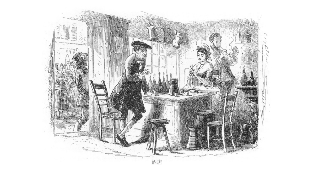 ディケンズのキャラづくりがうまいのは、ドファルジュ夫人の身ぶり。