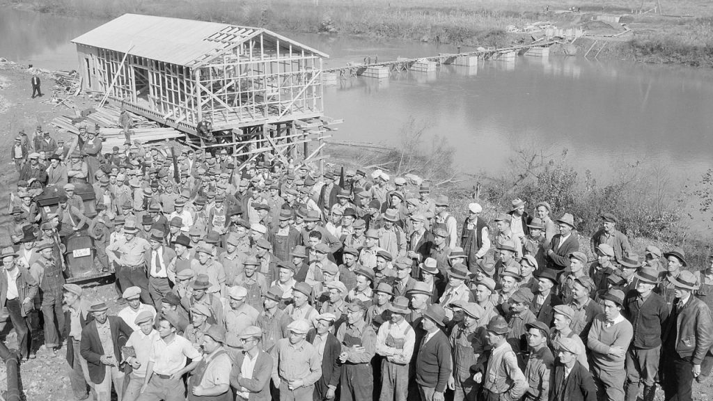 世界恐慌後のアメリカでは、ルーズベルト大統領のもとニューディール政策が実施されます。