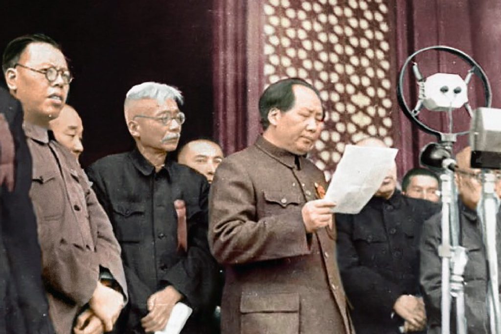 勢いにのった共産党は、北京で人民政治協商会議を開き、党員や民主派の人びとを結集させ、中華人民共和国が成立させます。